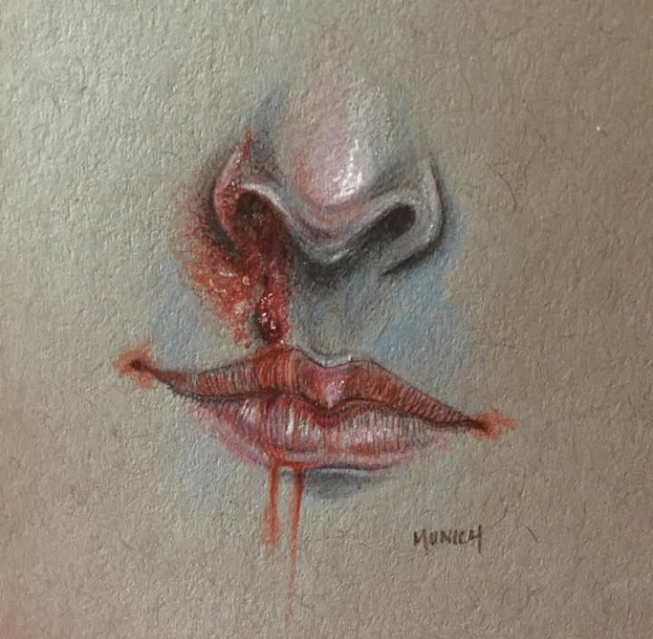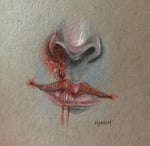 No matter what tries to keep you down, stay defiant! Part of the small drawing series. The drawing is on gray-toned paper created with a mix of pencil, paint, and pen. This framed original drawing measuring about 1.5" x 2.5", with frame it measures about 3" x 4".